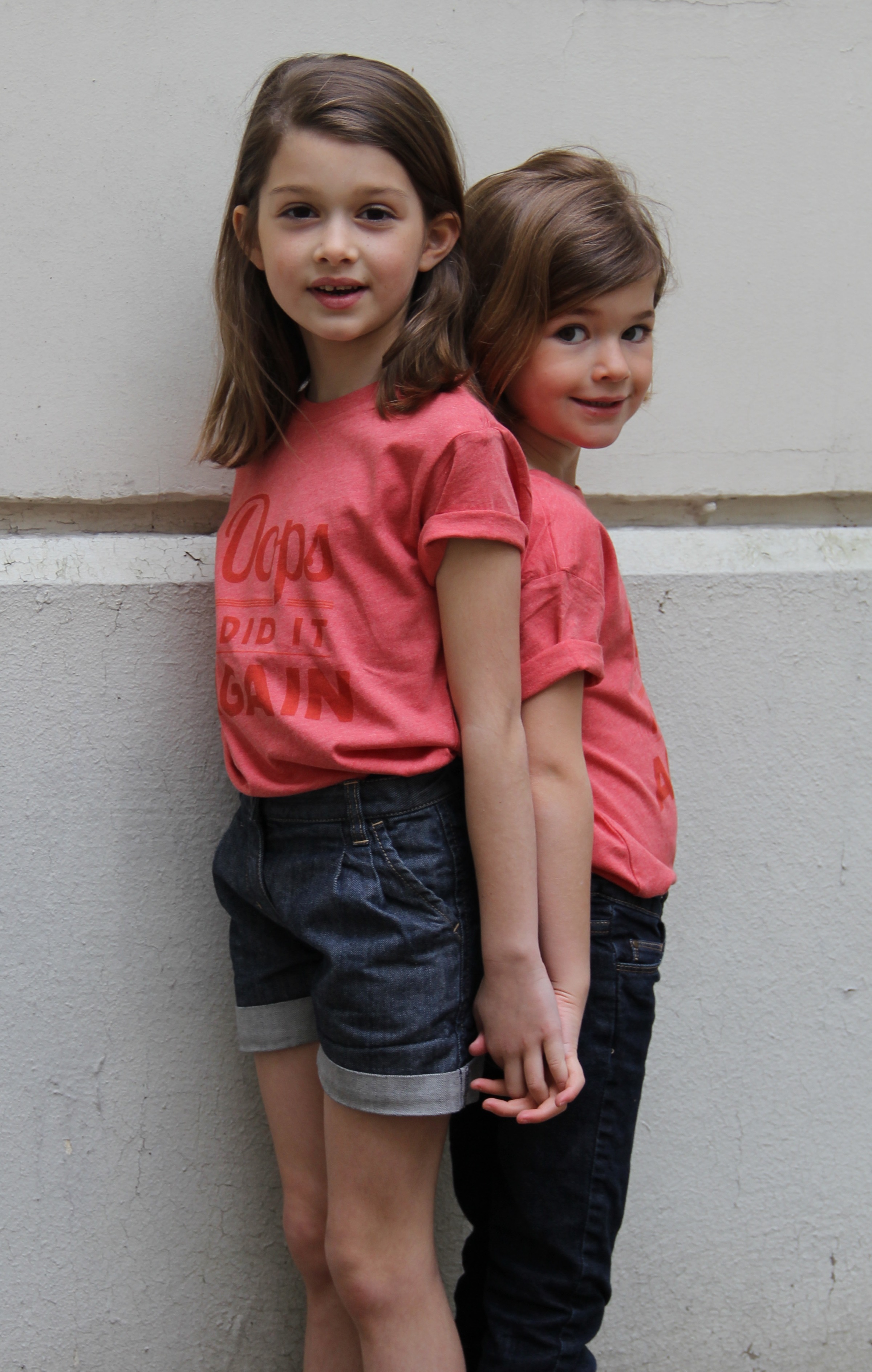 Info taille t-shirt enfant (« oops » et « rêves ») Le modèle est mixte, et taille bien (comprenez: ne taille pas petit!). Suivez donc cette petite astuce pour bien choisir la taille: Pour une fille ôtez 1 an à l’âge de l’enfant. (Ex sur les photos : Camille, 10 ans, porte le 9/11 ans; Madeleine, 7 ans, porte le 5/6 ans; Margaux, 6 ans, porte le 5/6 ans.) Pour un garçon prenez l’âge de l’enfant. (Ex sur les photos : Alfred, 7 ans, porte le 7/8 ans; Augustin, 3 ans et demi, porte le 3/4 ans; Louis, 4 ans, porte le 3/4 ans; Achille, 10 ans, porte le 9/11 ans.)