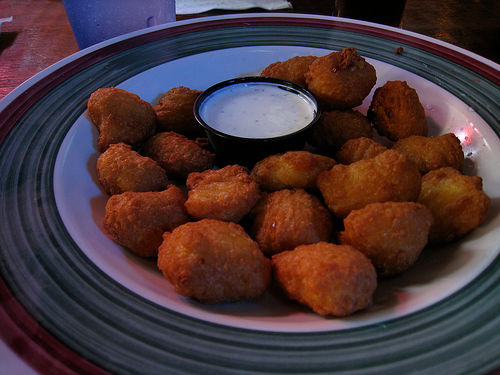 – Remplir une assiette de chapelure (la maizena “chapelure dorée” fait très bien l’affaire, ou des biscottes écrasées, ou de la chapelure japonaise… ou des flocons d’avoine….), rouler les morceaux de poulet dedans.