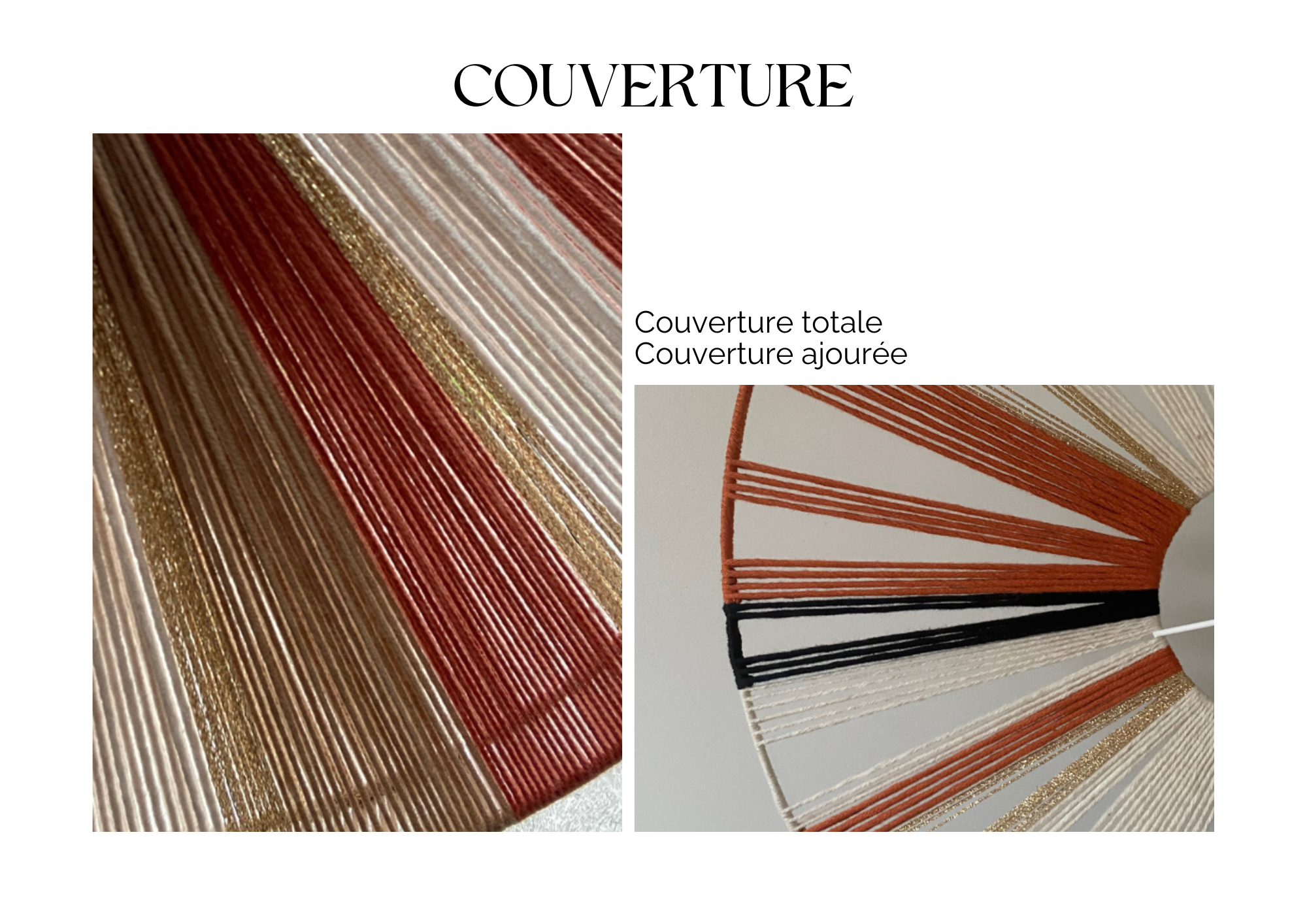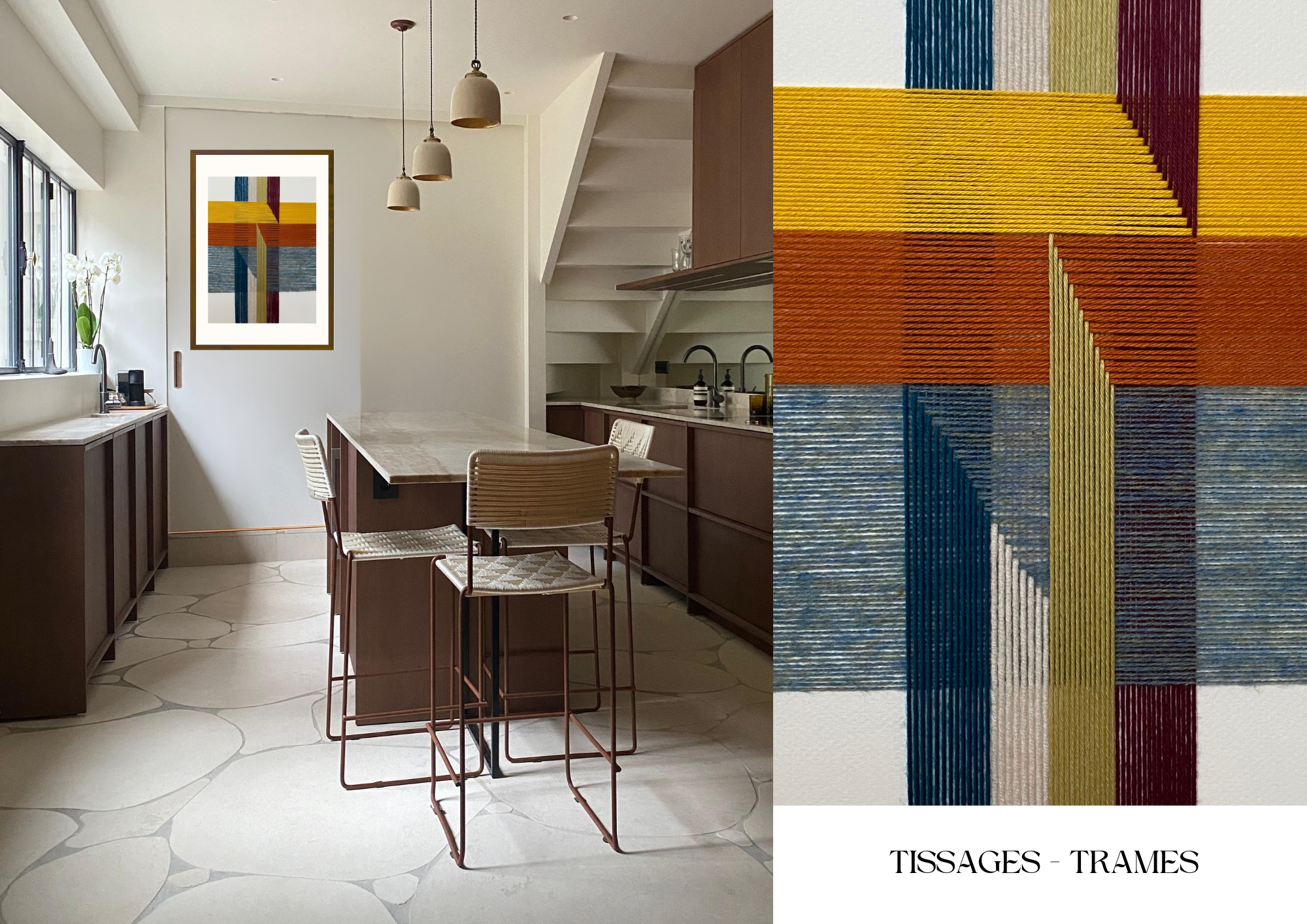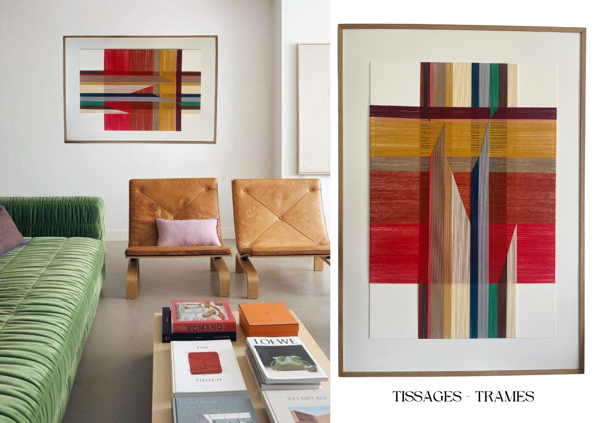 - TRAMES : les fils se mêlent en chaines et trames pour un rendu ultra graphique. Son point de départ est la gamme de couleurs, qui s’adapte selon vos goûts personnels.